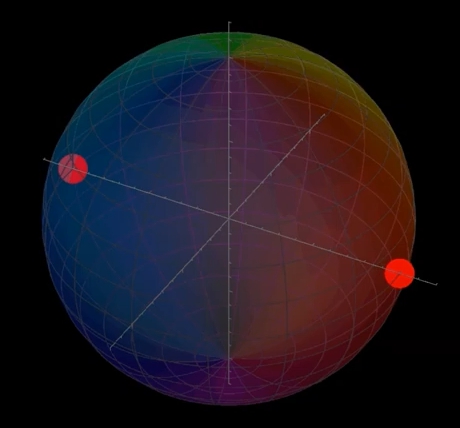 The Borsuk-Ulam theorem states that every continuous function from an $n$-sphere into Euclidean $n$-space maps some pair of antipodal points to the same point. Here, two points on a sphere are called antipodal if they are in exactly opposite directions from the sphere's center.Formal definition
